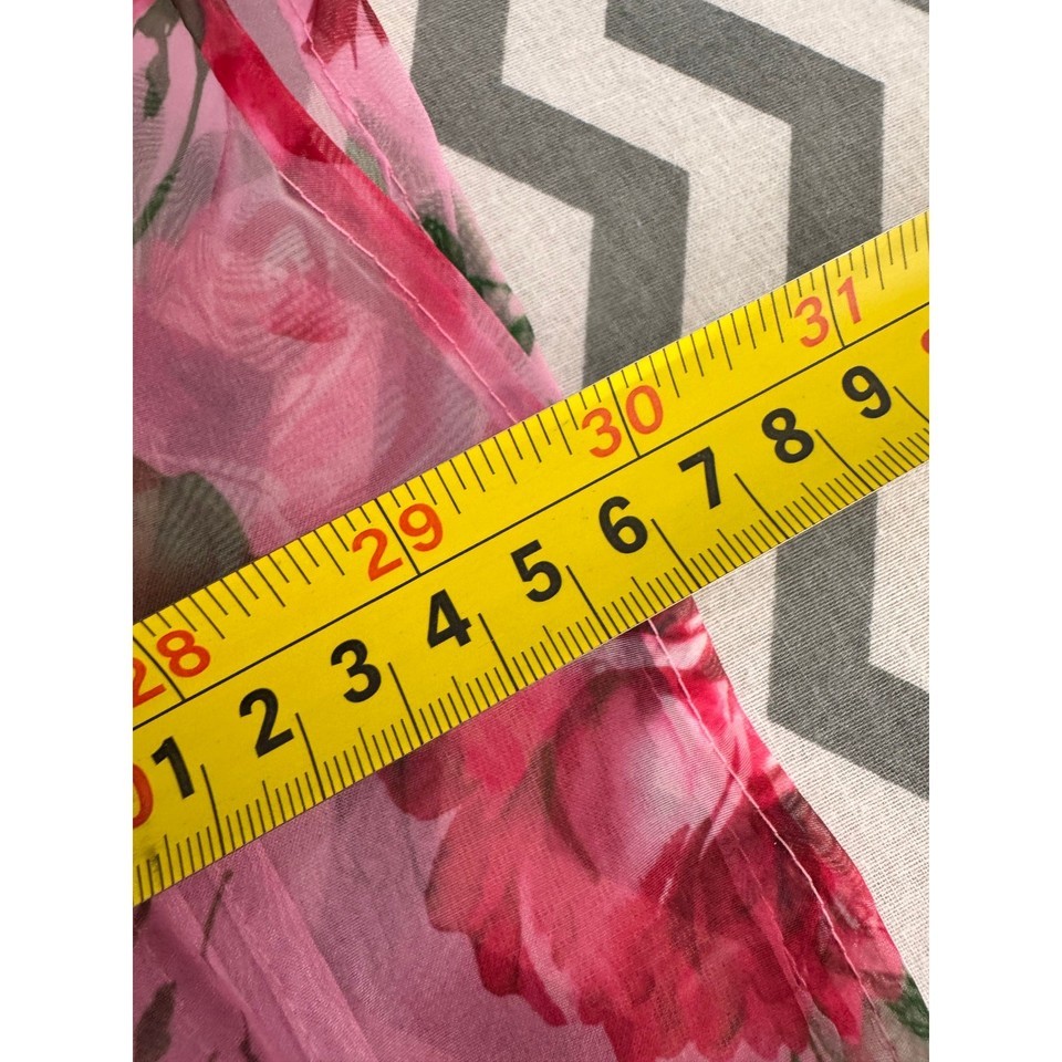 Fabric: Outer: Sheer chiffon-style polyester (unlabeled), Lining: Lightweight fabric (likely polyester)