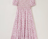 - Pink Frilly Shirred Bodice Tiered Floral Maxi Dress