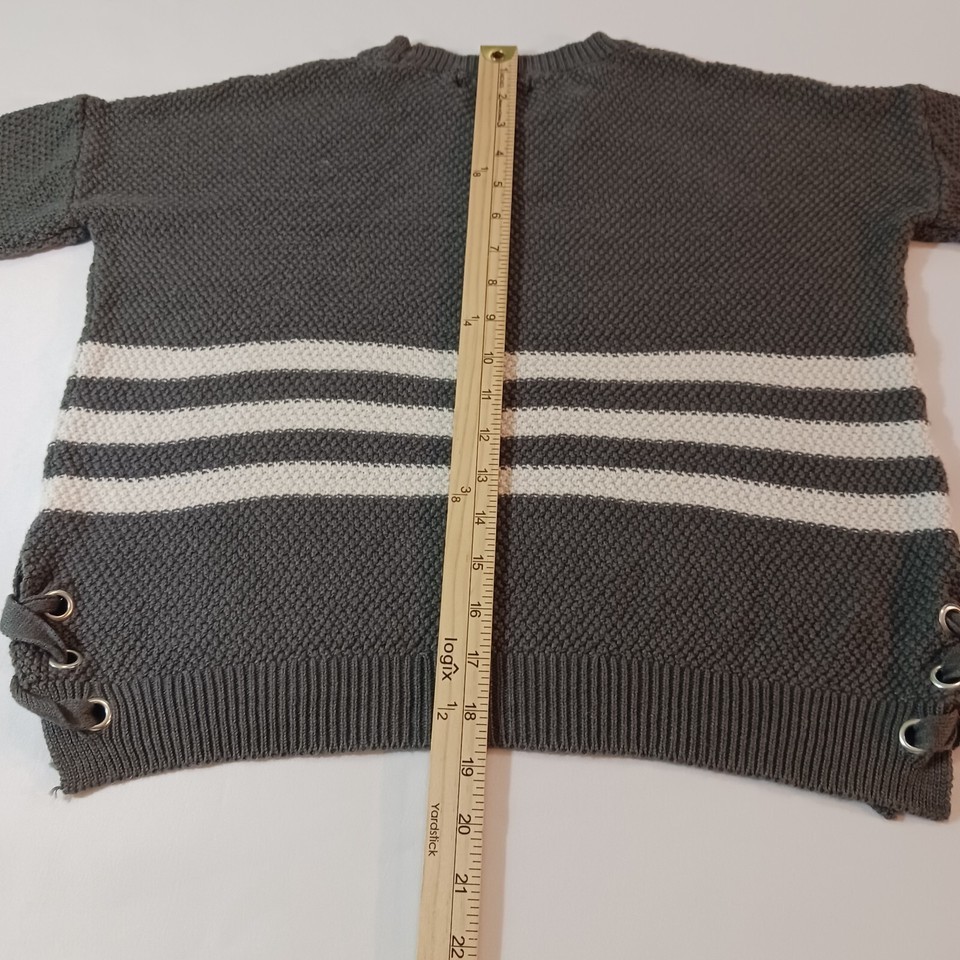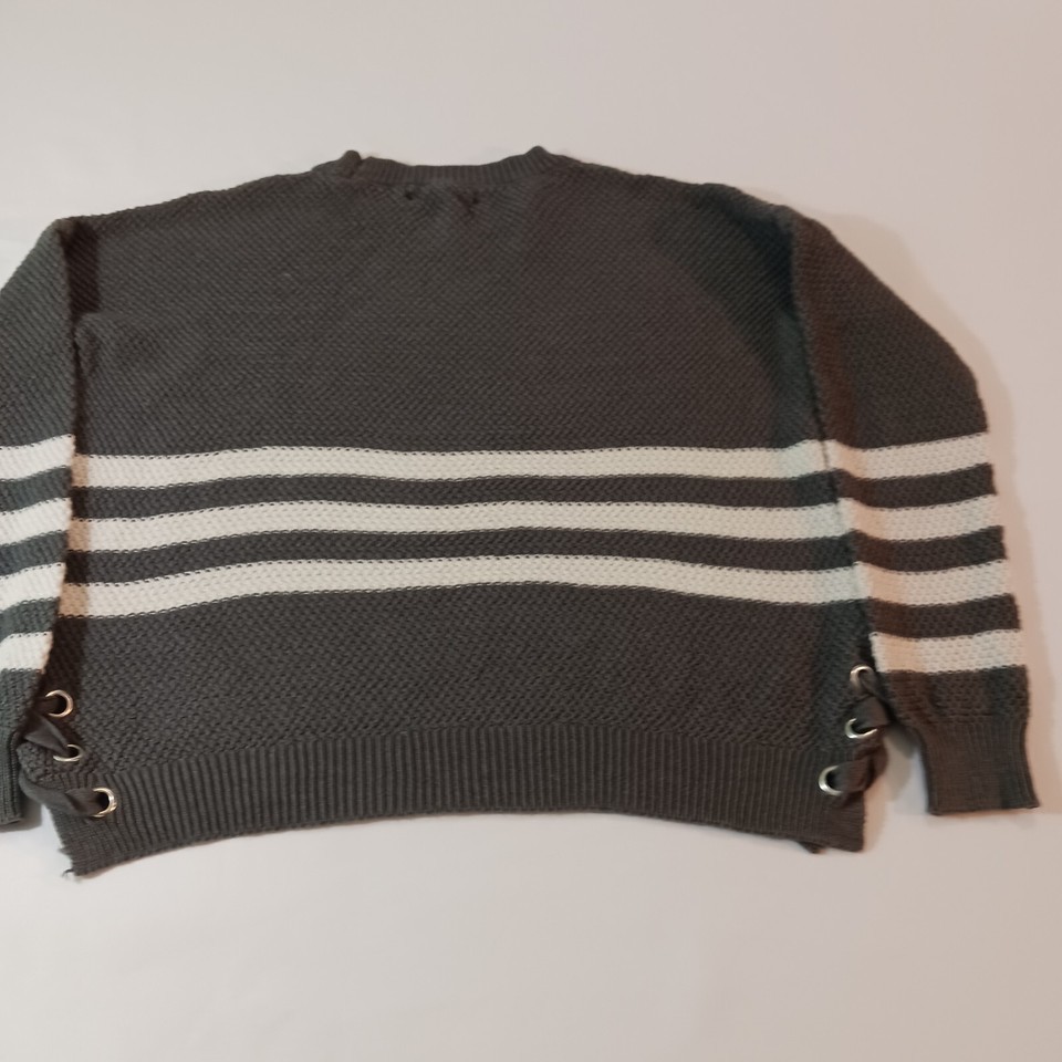 - Pink Republic Women's Gray & White Stripes Long Sleeve Pullover Sweater Size S