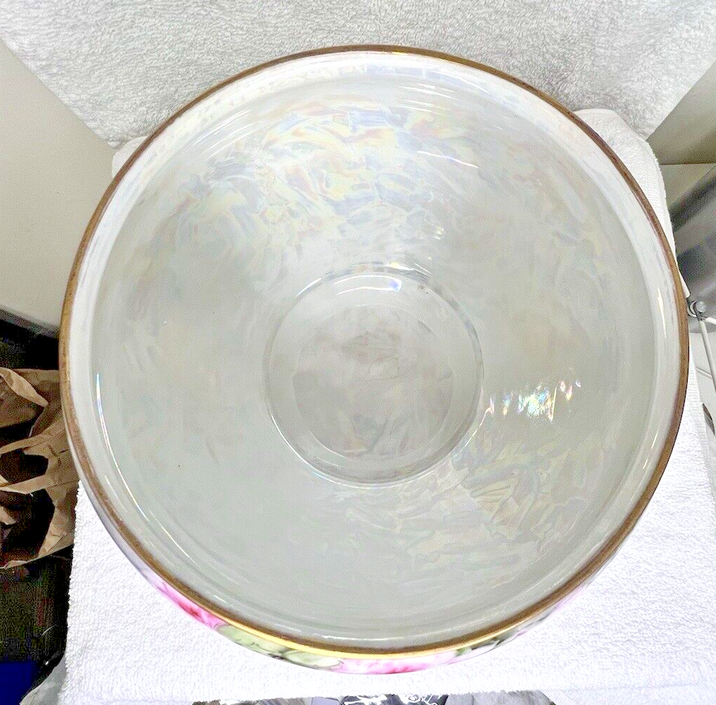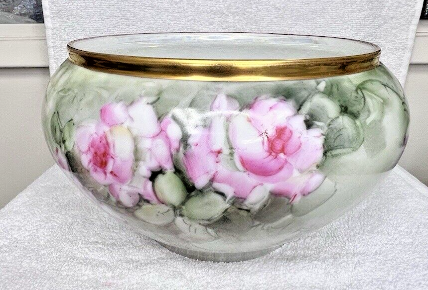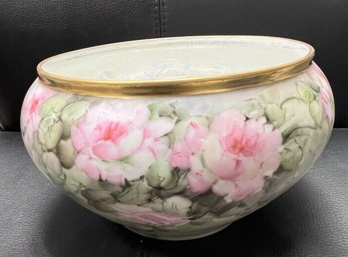 Pink Roses Gold Hand Painted Jardiniere Urn Bavaria 5" Tall x 7 3/4" Wide