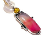 Pink Stripped Agate,Citrine Natural Gemstone 925 Silver Handmade Artisan Pendant