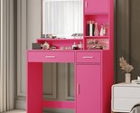 Pink Vanity Desk with Mirror & LED Lights