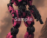 This striking artwork captures a battle-scarred pink war mech advancing through a storm of dust and debris. Its exposed mechanical core, worn armor plates, and heavy weaponry create a bold fusion of beauty and destruction. Designed for sci-fi lovers, collectors, gamers, and anyone who wants a powerful futuristic centerpiece in their digital or printed collection. A perfect mix of elegance, chaos, and machine dominance.