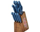 Pioneer Woman ~ 11-Pc. Set ~ Stainless Steel Knives ~ ACACIA Wooden Block ~ BLUE