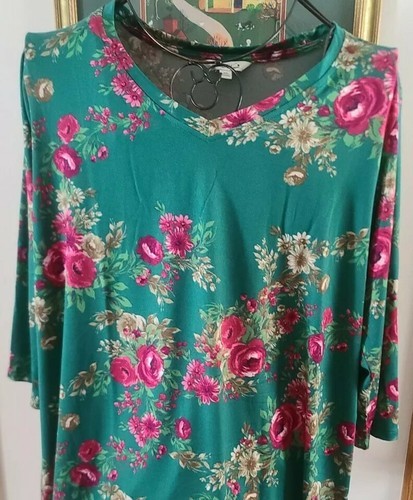 Pioneer Woman ~ 3/4 Sleeve ~ V-Neck ~ Desert Flower Green Tee ~ Size 2XL (20)