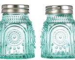 Pioneer Woman ~ ADELINE ~ Embossed ~ Glass ~ Turquoise ~ Salt & Pepper Shakers