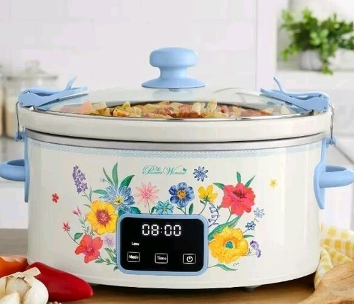 - Pioneer Woman BRILLIANT BLOOM 6-Quart Digital Slow Cooker Crock Pot Locking Lid