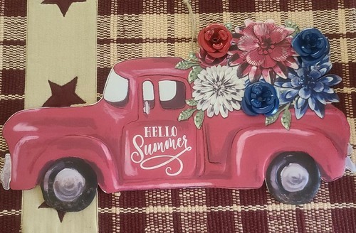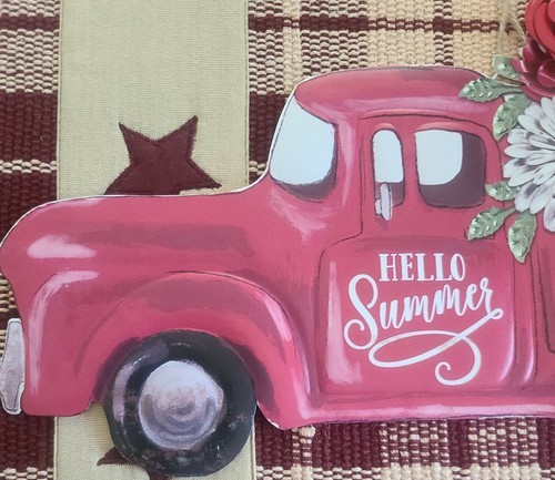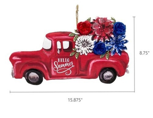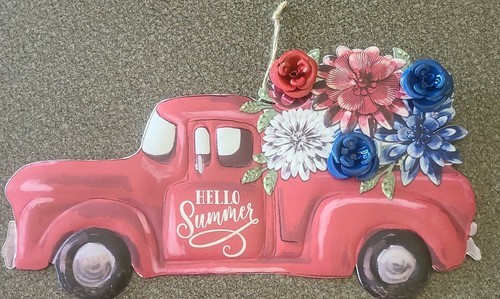 Pioneer Woman Country ~ Metal Art Plaque ~ HELLO SUMMER ~ Vintage Truck Flowers