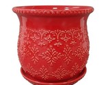- Pioneer Woman ~ Embossed ~ Timeless 6" Geo Planter ~ Embossed ~ Stoneware ~ RED
