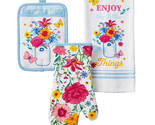 The set includes 1 potholder, 1 full size kitchen mitt, and 1 kitchen towel.