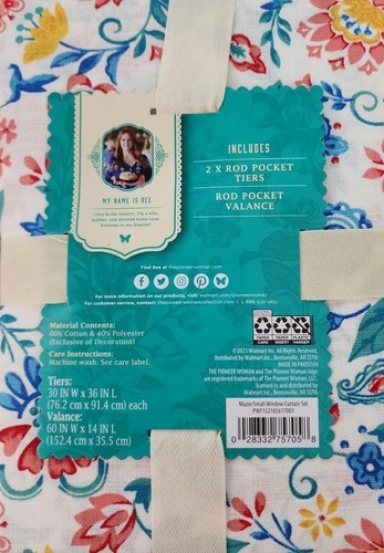 Pioneer Woman ~ MAZIE ~ Three (3) Piece Curtain Set ~ Tiers 30" x 36" & Valance