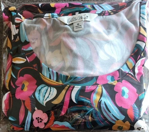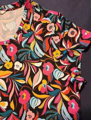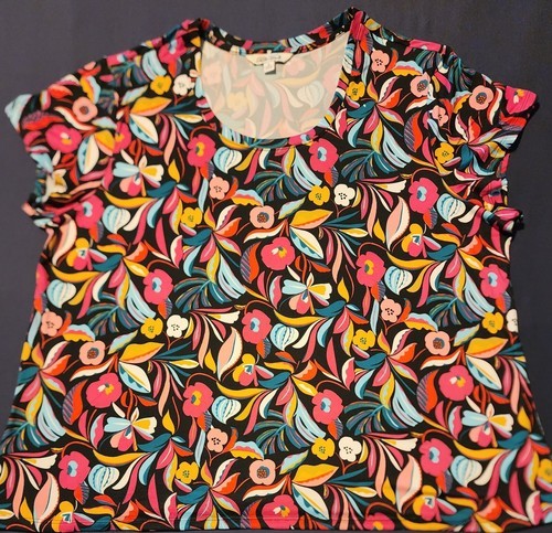 Pioneer Woman ~ Short Sleeve ~ Boat Neck Tee Shirt ~ FLORAL BLACK Size 1X (16W)