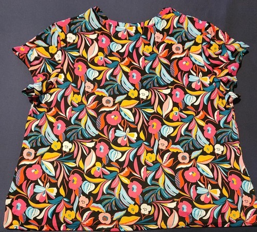 - Pioneer Woman ~ Short Sleeve ~ Boat Neck Tee Shirt ~ FLORAL BLACK Size 1X (16W)