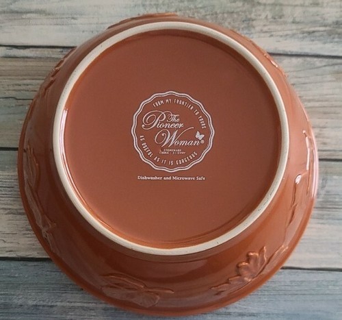 - Pioneer Woman ~ Stoneware Mixing Bowl ~ 7" Dia. ~ Leaf Design ~ Pumpkin Orange