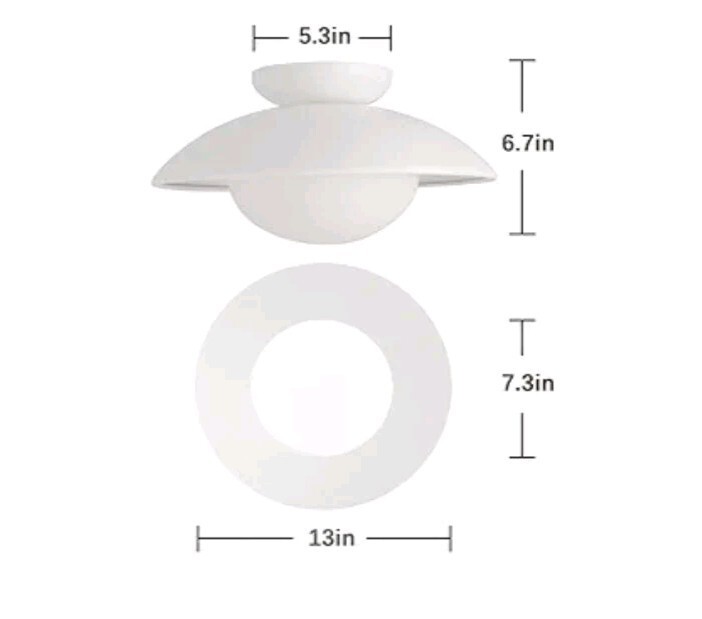This close to ceiling light fixture is made of frosted glass shade and surrounded by novel soft white "? UFO Style ?" design metal fixture body, bringing a modern twist to its Avant-garde retro design.