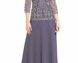 Pisarro Nights Embellished Mesh Gown Sz 2 Smoke