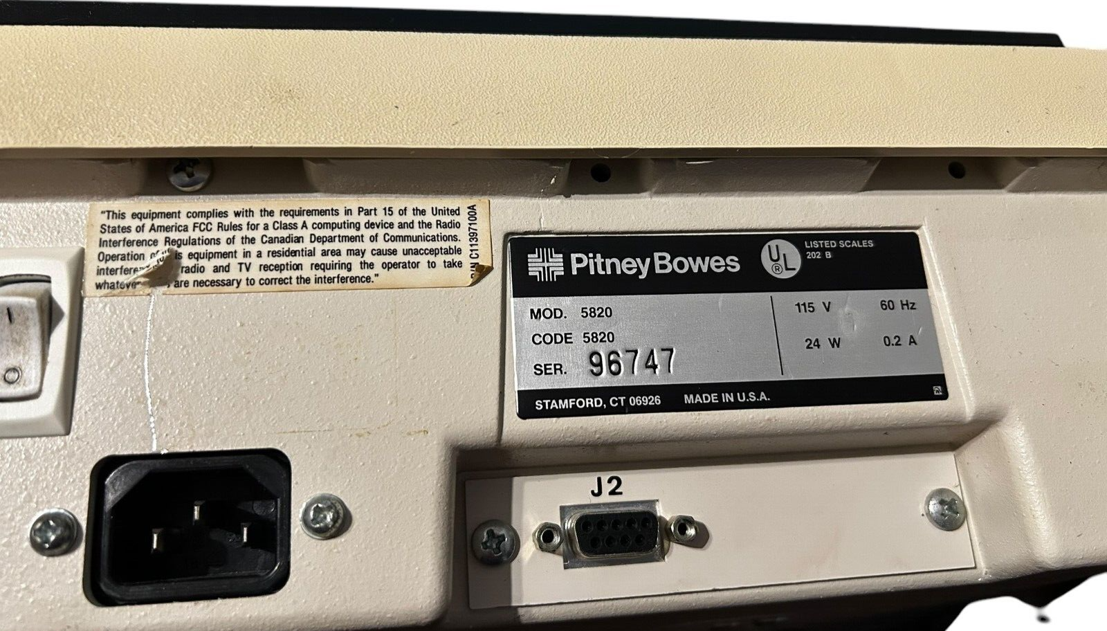 - Pitney Bowes Model 5820 Postage Scale, 115V, 60 Hz, 24W, 0.2A