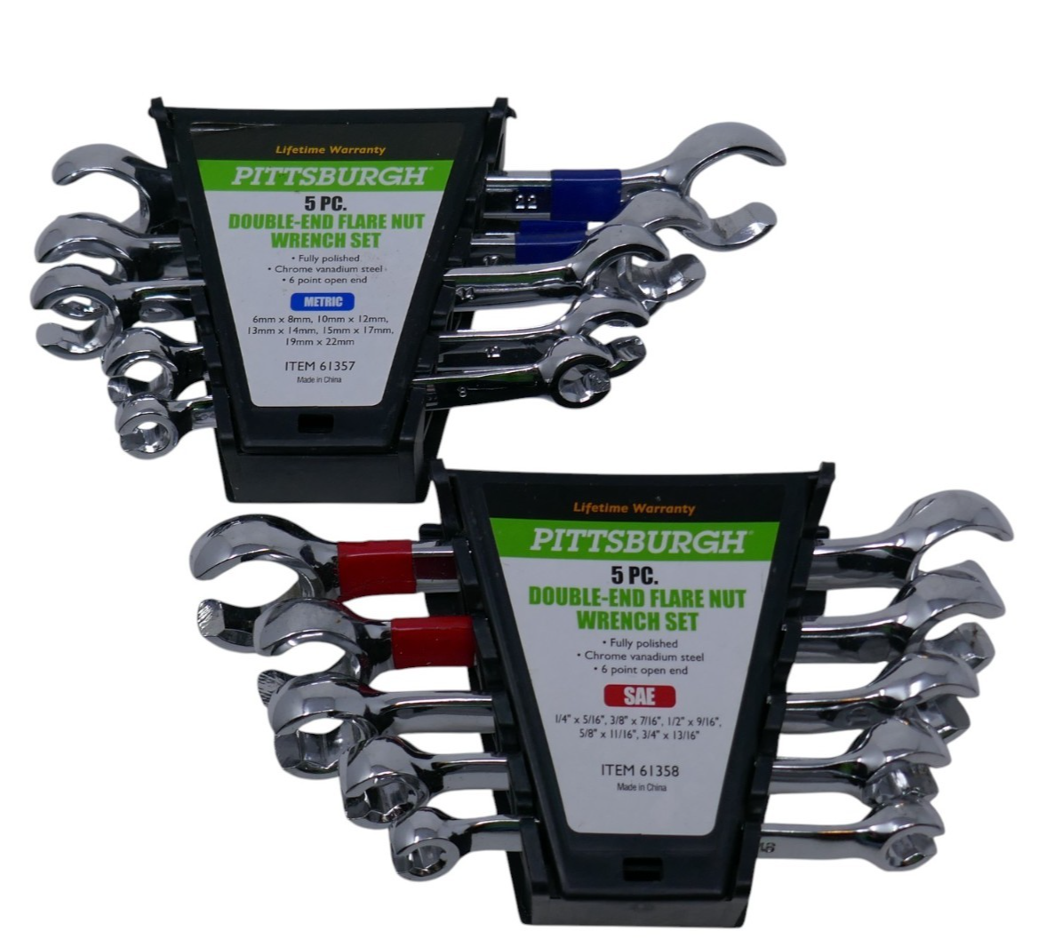 - Pittsburgh 5 Piece Double-End Flare Nut Wrench Set ~ Metric & SAE