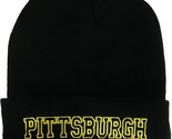 - Pittsburgh City Name Cuffed Winter Knit Beanie Toboggan Hat (Black/Gold)