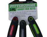 This is a brand new 3-piece Pittsburgh Handy Hex Keys set, featuring various sizes and colors. Made of chrome vanadium steel, these non-ratcheting hex keys come with a cushion grip for added comfort. With a lifetime manufacturer warranty, this set is suitable for both metric and standard measurements, making it a versatile and reliable tool for any home or workshop project.
