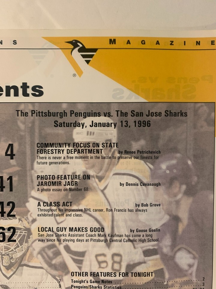 - Pittsburgh Penguins Magazine: 1995-1996: Tomas Sandstrom: NHL: Hockey: 1/13/96