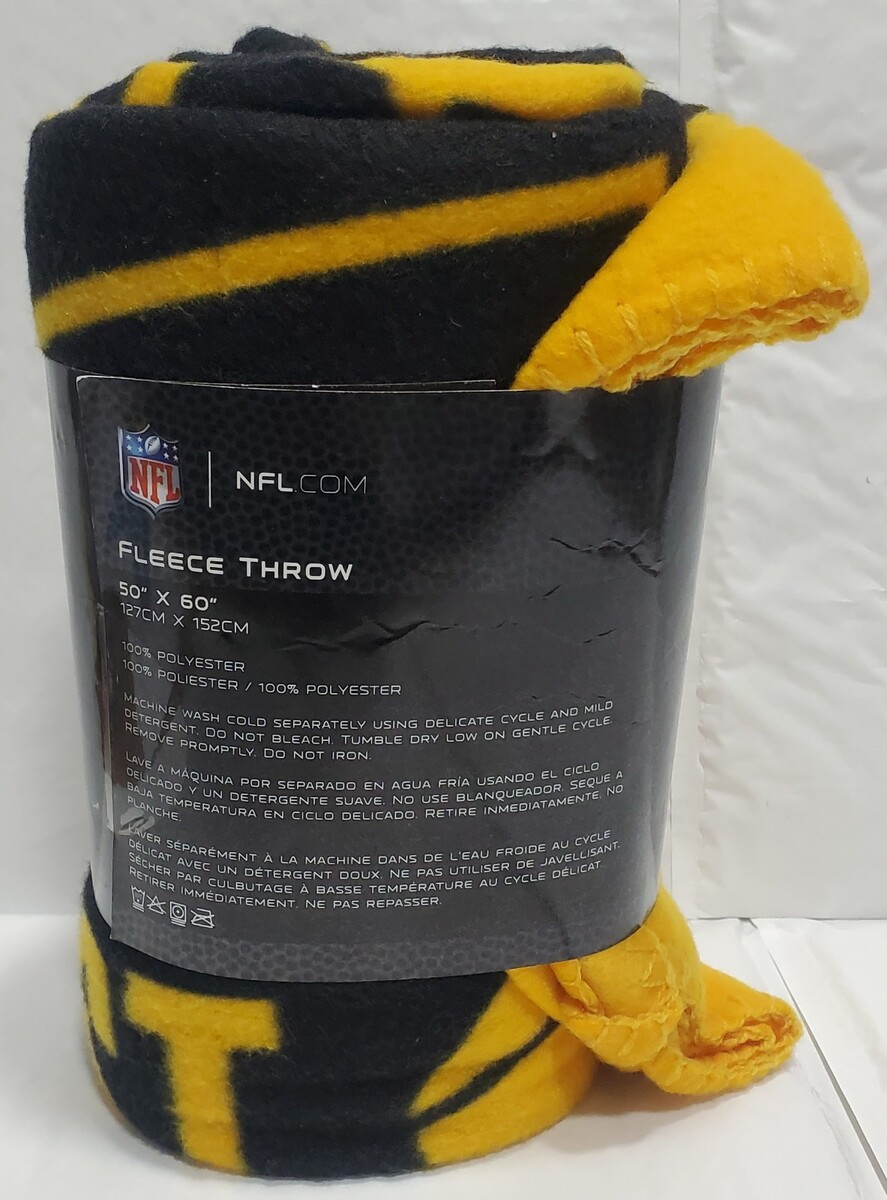 This is a 50" by 60" Pittsburgh Steelers Fleece throw blanket.