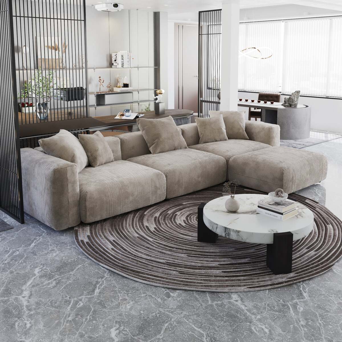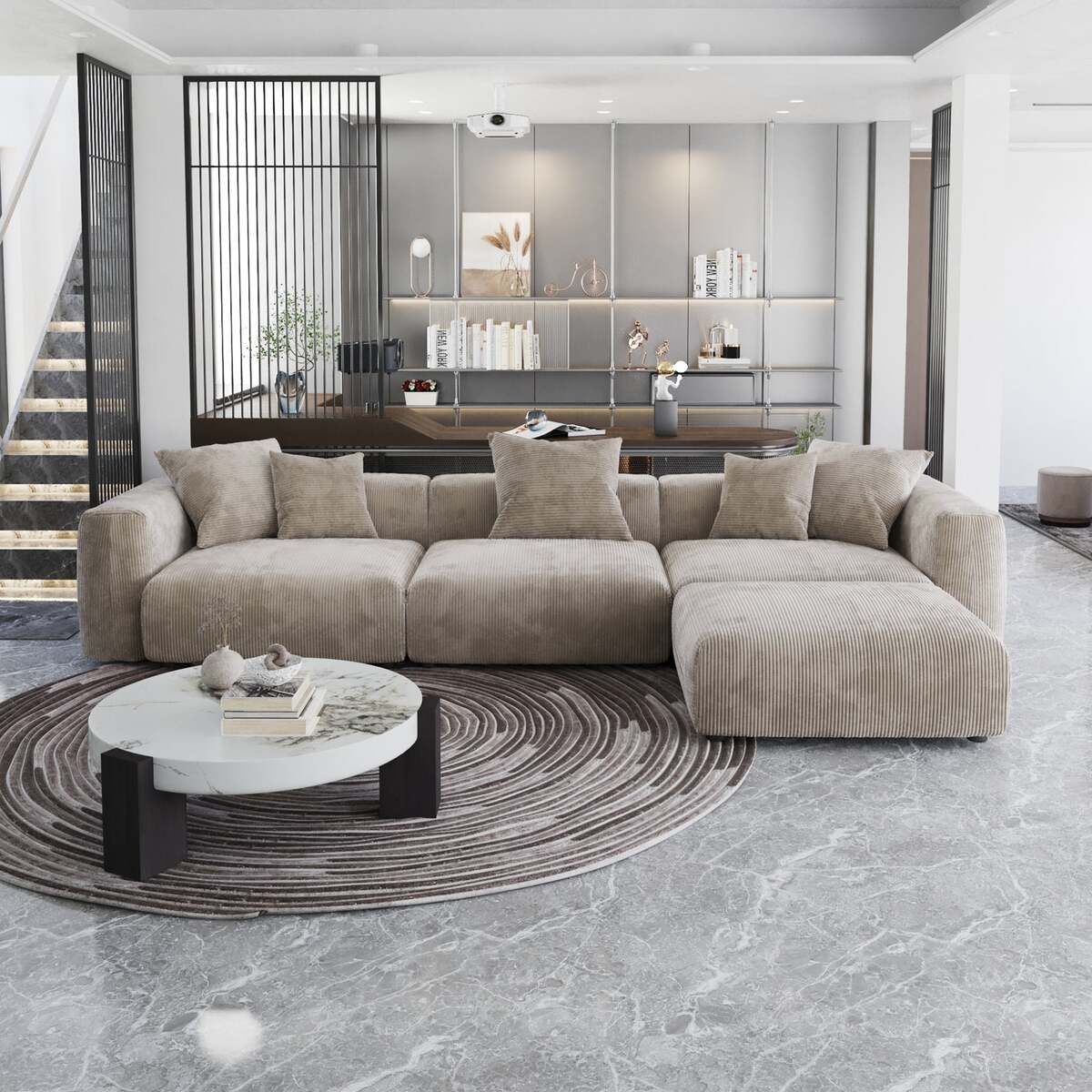 - Pixel Modern Modular Corduroy L-Shaped Sectional Sofa 4-Seater Brown