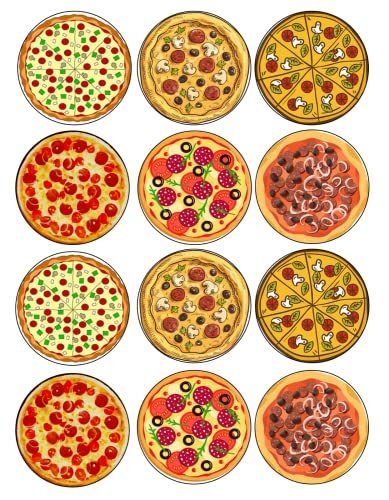 - Pizza Birthday Party Edible Wafer Precut Cupcake, Cookie Toppers -03