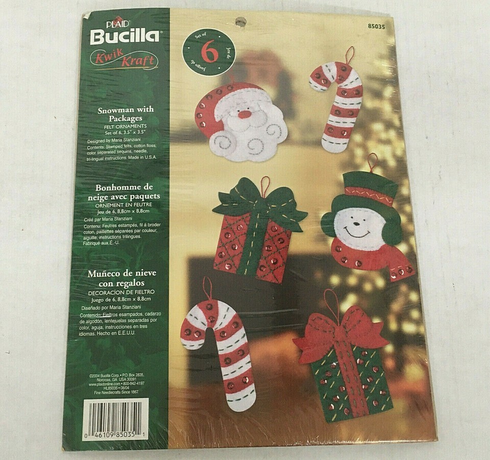 - Plaid bucilla kwik kraft snowman with packages felt ornaments kit 85035