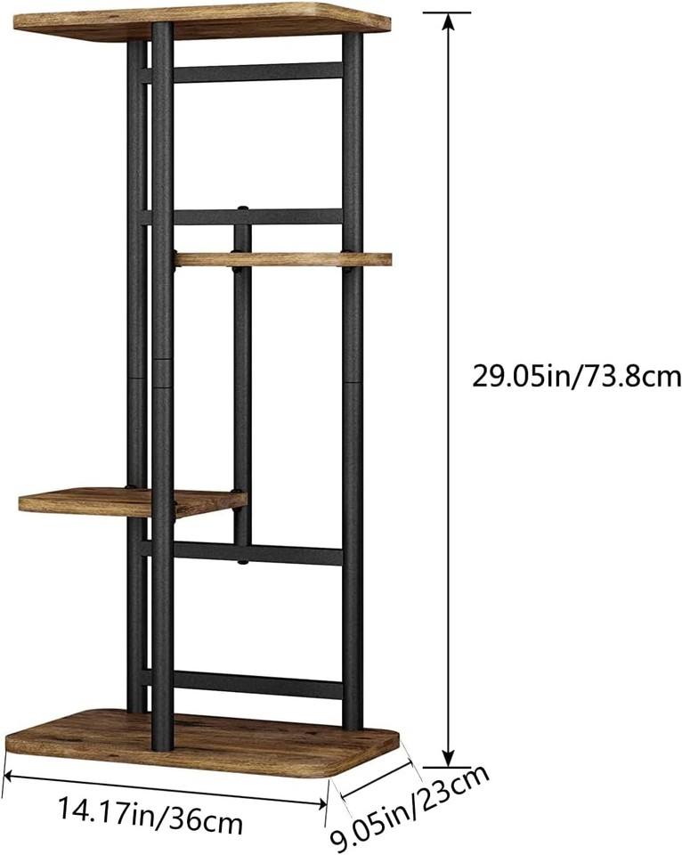 High Quality Materials : The plant stand is made of 100% pure iron and MDF, smooth and burr-free, easy to maintain and wipe. The plant stand has 4 tiers of space and can hold up to 5 potted plants. The assembly size is: 14.17L*9.05W*29.05H in (36*23*73.8cm).