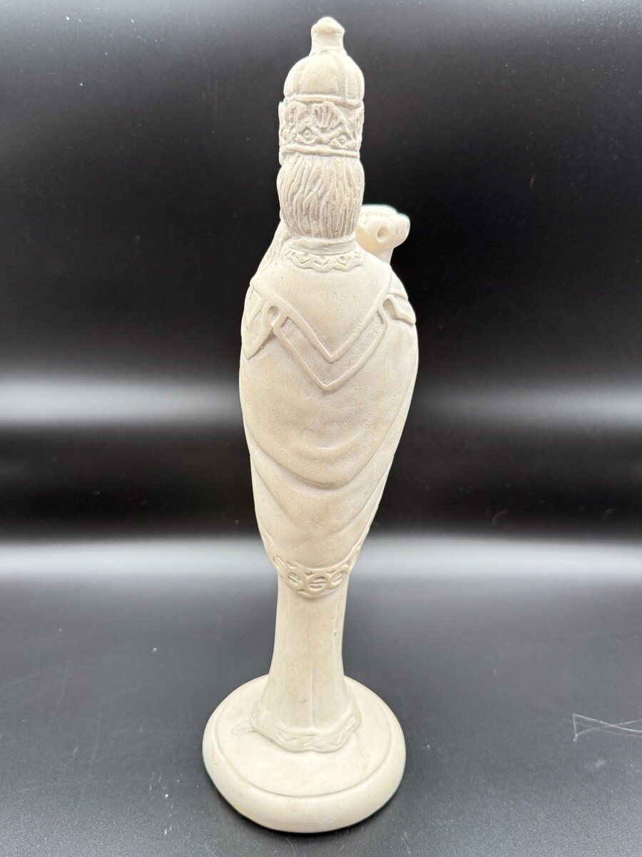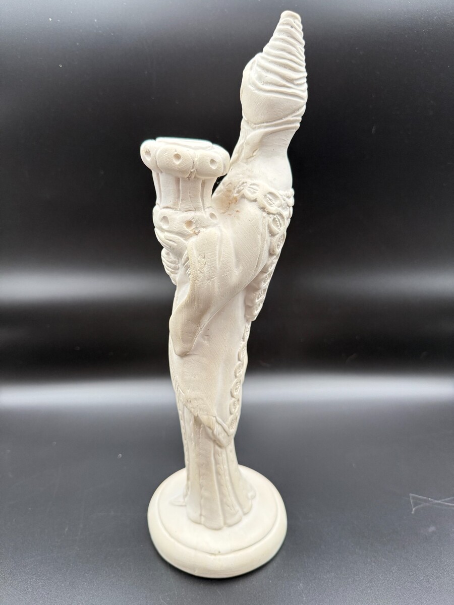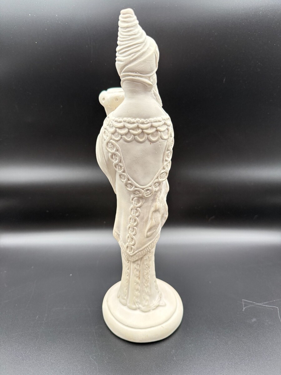 stands tall at 14 inches with a clean ivory finish and weighty chalkware?like