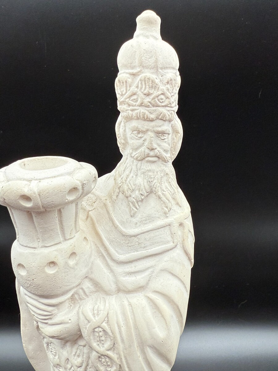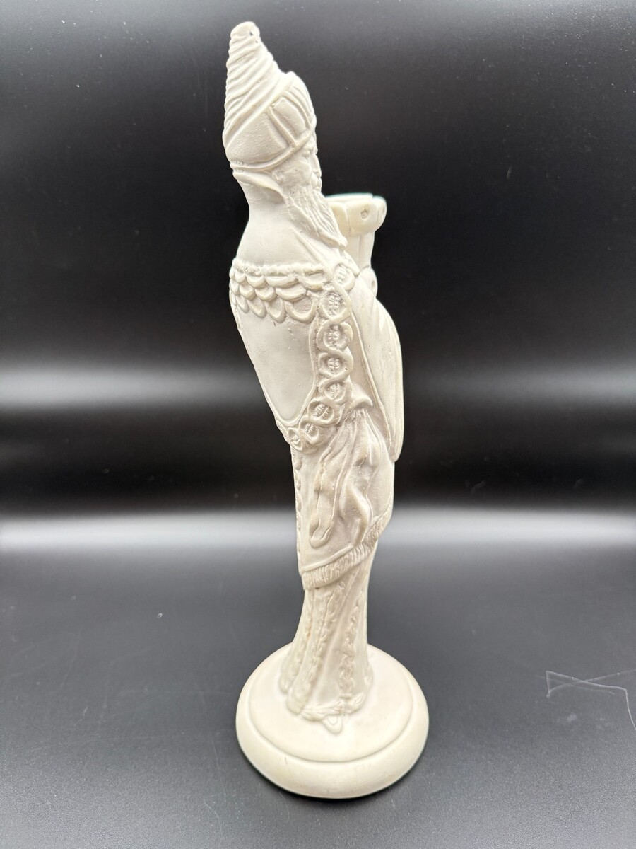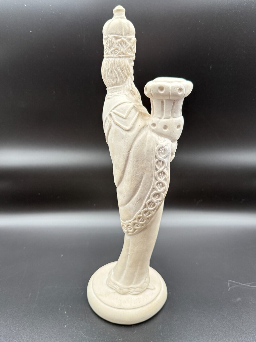 stands tall at 14 inches with a clean ivory finish and weighty chalkware?like