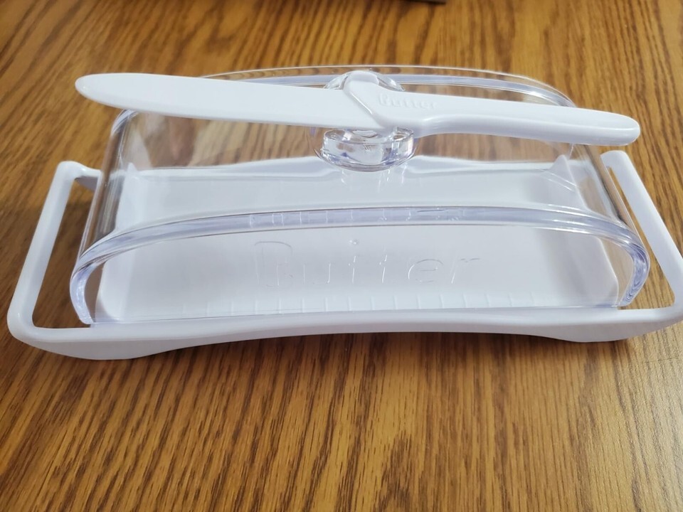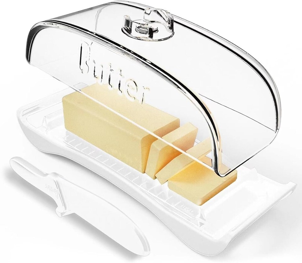 - Plastic Butter Dish with Lid and Knife BPA-Free Container 8.3"L x 2.9"W x 2.7"H