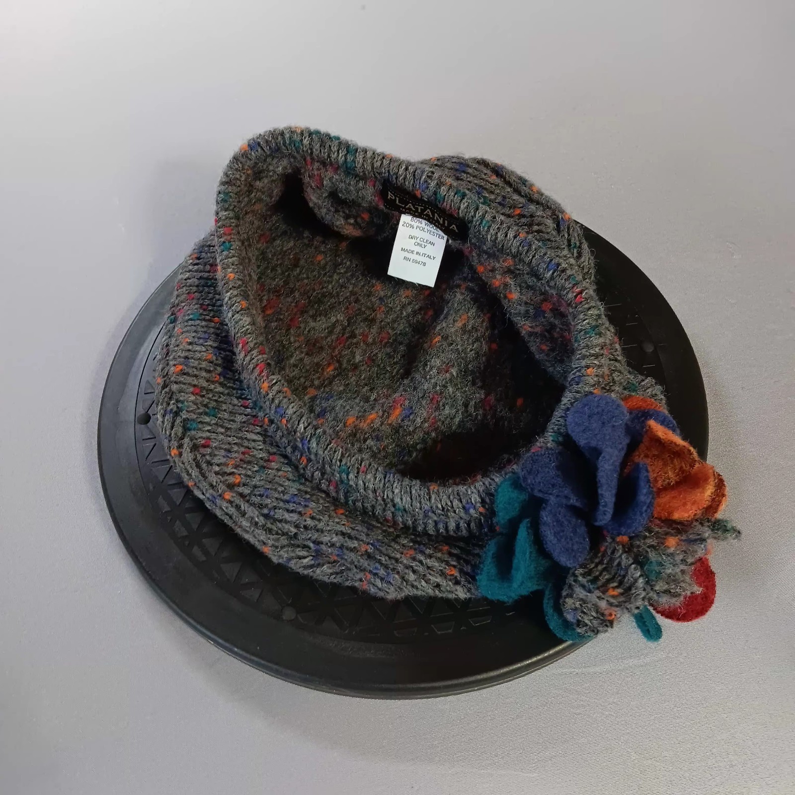 Platania Gray Wool Blend Hat Multi-Color Accents With A Boho Vibe Made In Italy