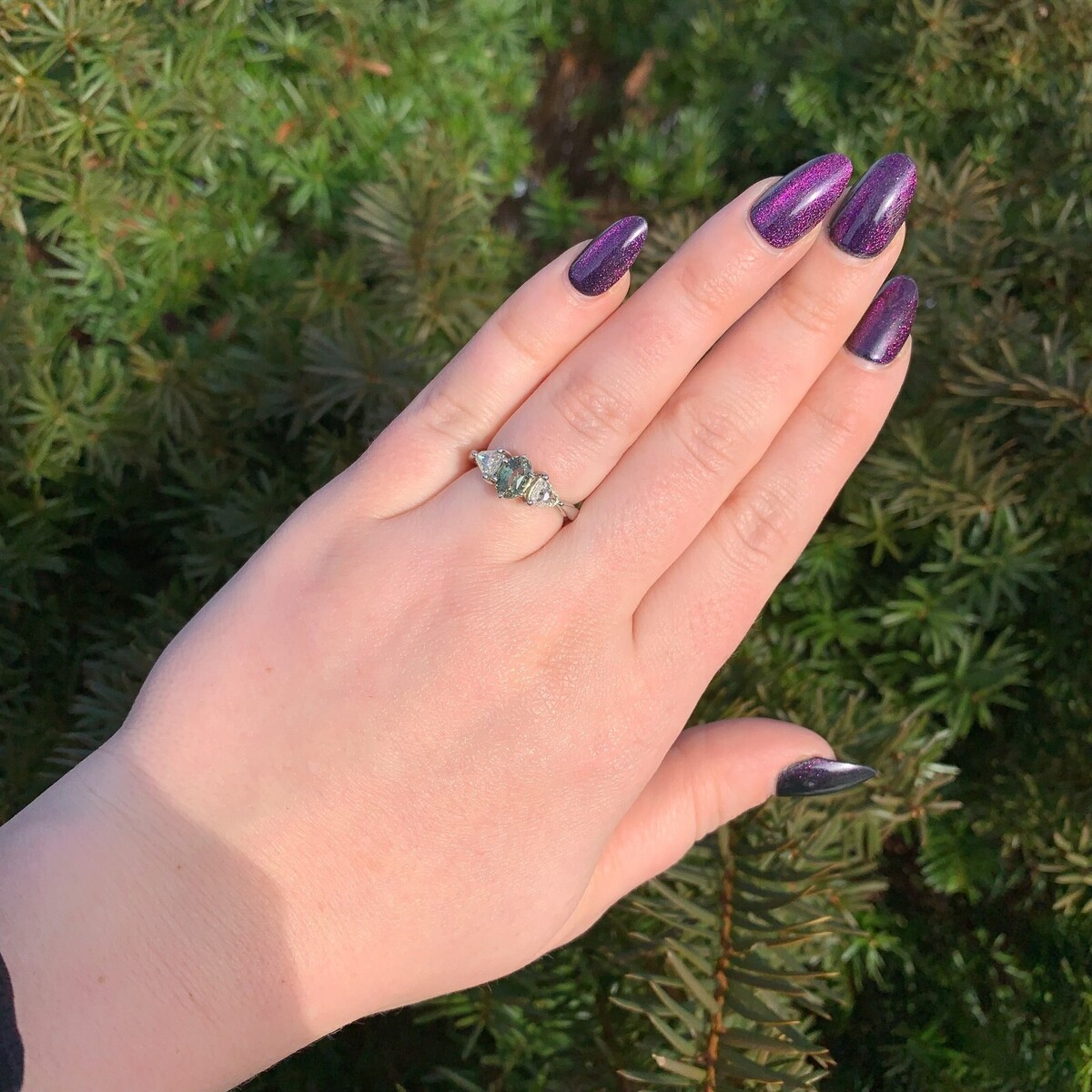 The ring fits a size 6.25 finger and weighs 3.53 dwt. It is newly made with vintage diamonds. Exquisite!