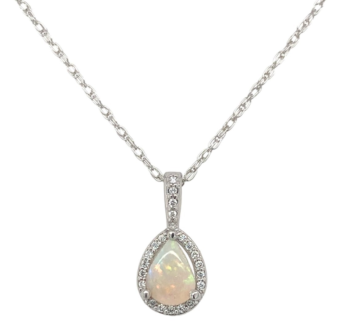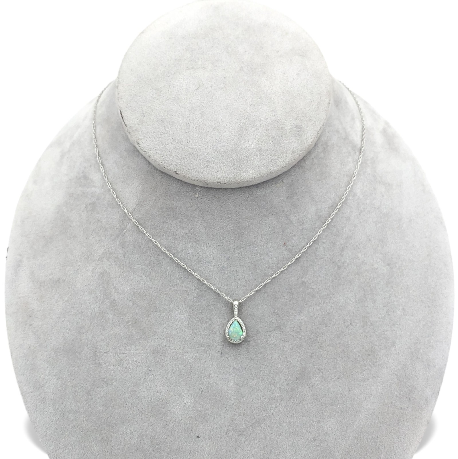 - Platinum .43ct Pear Shape Australian Genuine Natural Opal Diamond Pendant #J7451