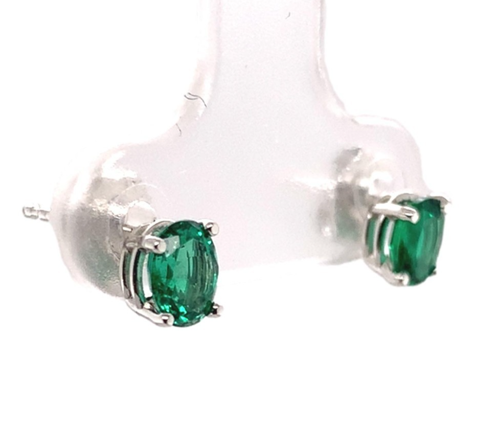 - Platinum Oval .67ct TW Genuine Natural Emerald Stud Earrings Jewelry (#J7424)
