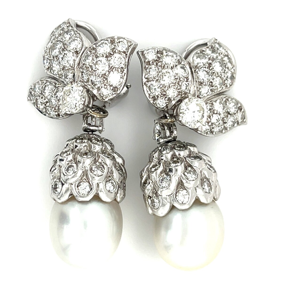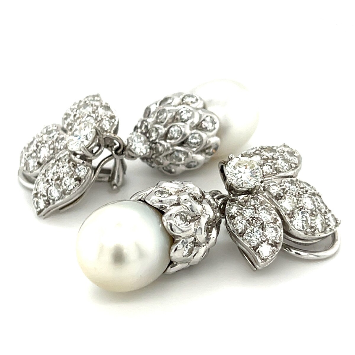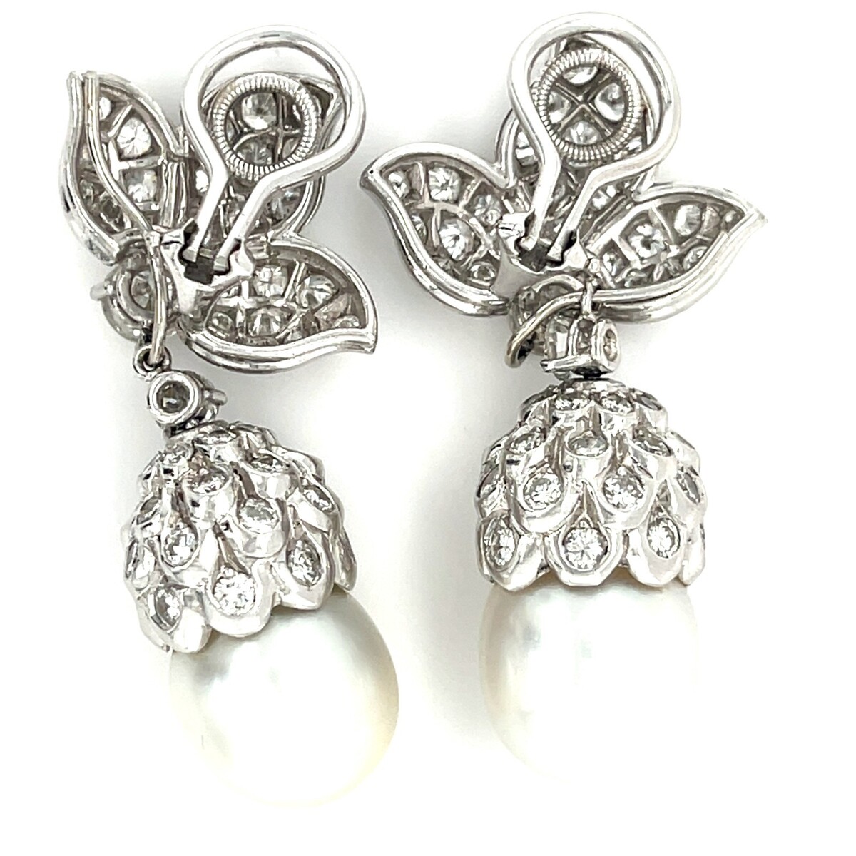 Gorgeous South Sea Pearl Diamond Earrings Set in Platinum