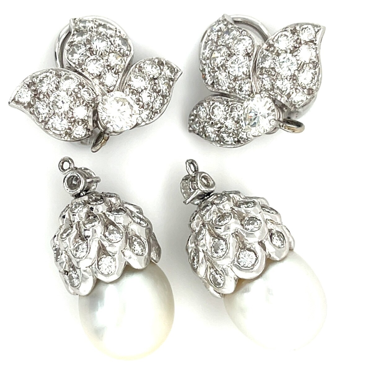 - Platinum South Sea Pearl and 5 CTW Diamond Day/Night Clip-On Earrings