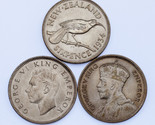 Lot de 3 pieces de monnaie en Nouvelle-Zelande 6 pence 1934 - 1943 XF - AU