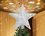 PliMook Christmas Tree Topper Lighted with 6 Patterns Projector, Christmas Tree Star Topper Built-in 3D Glitter LED Rotating Lights, Silver Tree Topper Christmas Decoration for Xmas Party Holiday