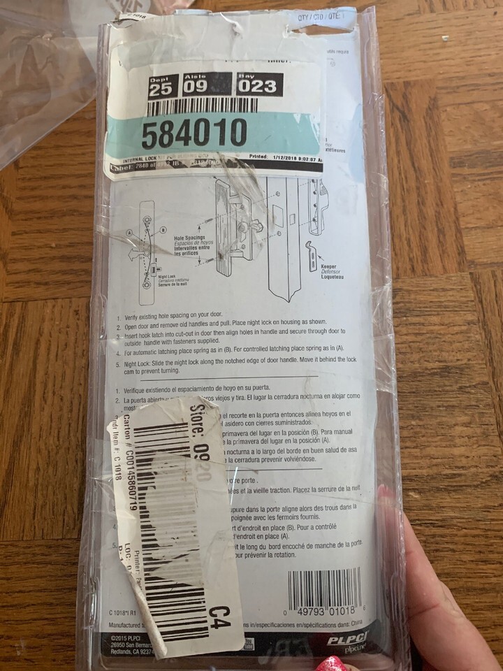 PLPCI Patio Door Handle. Shipped with Expedited Shipping.