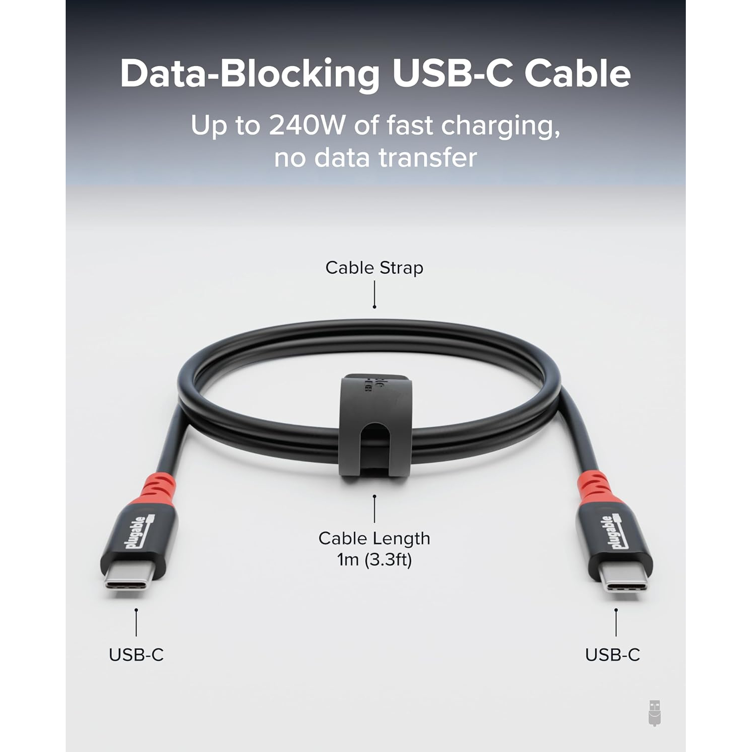 PLUGABLE USB-C CHARGING CABLE 240W WITH DATA BLOCKING 1 METER
