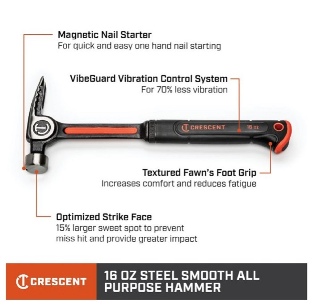 Crescent CHFGP16 Forged Steel Head, Fiberglass Handle, Claw Hammer - 16 oz.