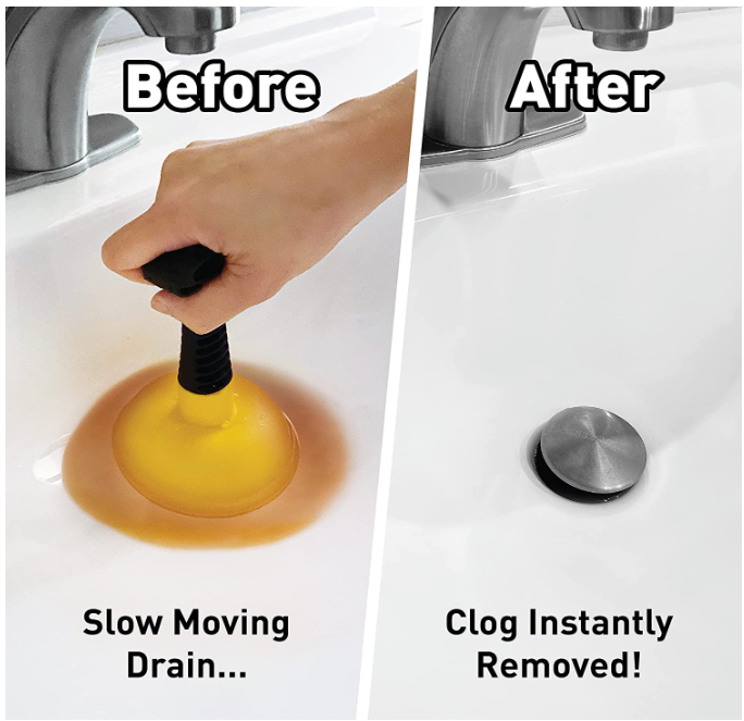 MINI SINK PLUNGER: Clear clogs instantly in your sink or other drains with this small plunger by Plungeroo. Simply press down to provide a strong push that removes any blockage in your sink, shower, or bathtub.