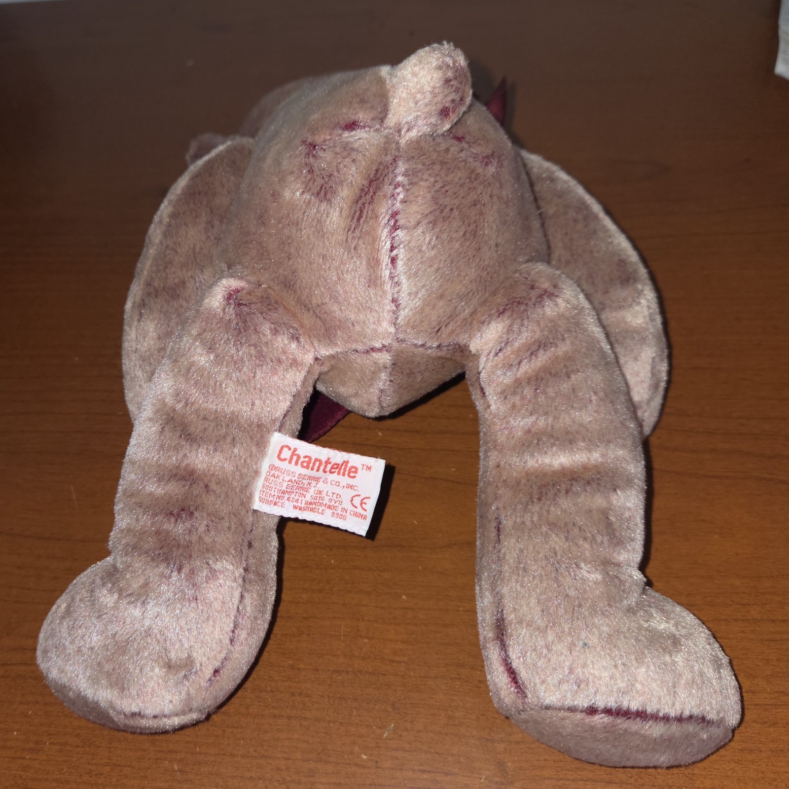 The Plush Bear Chantelle with Red Velvet Heart is a delightful stuffed animal collectible from Russ Berrie. This charming bear features a soft and cuddly design, perfect for animal lovers and collectors alike. The addition of the red velvet heart adds a touch of sweetness to the overall theme, making it a lovely addition to any animal-themed collection.