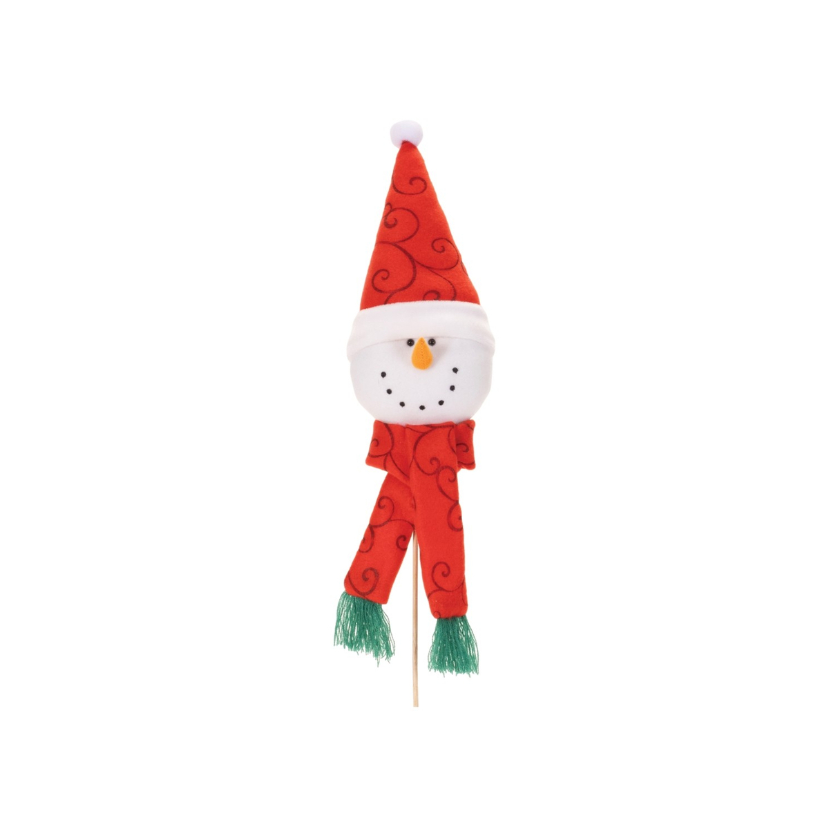 Bring holiday cheer to your seasonal decor with this set of Plush Snowman Head Picks. Featuring a whimsical smiling snowman design in festive red, white, and green tones, these soft and plush picks add a playful touch to any display. Perfect for arranging in a festive pine porch pot, seasonal floral arrangement, or tabletop vase, they can also be tucked into your Christmas tree for a charming and eye-catching statement. With a set of 6, you have plenty of options to create stunning festive floral displays throughout your home.
