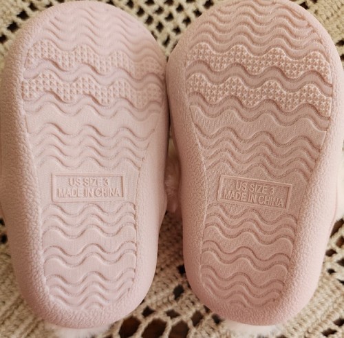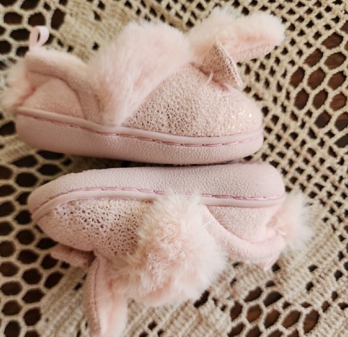 Plush w/Bunny Ears ~ Faux Fur ~ Size 3 Months ~ PINK Slippers ~ Rubber Outsole