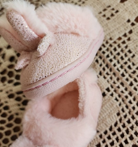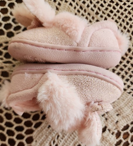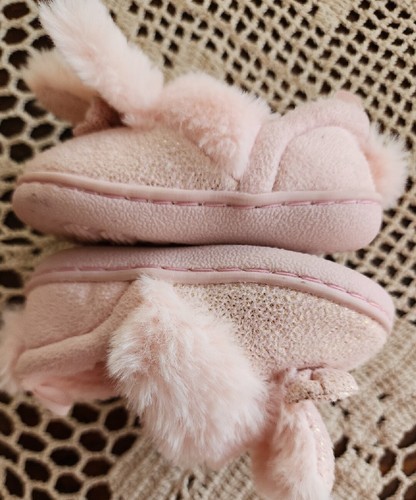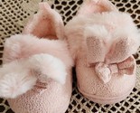 - Plush w/Bunny Ears ~ Faux Fur ~ Size 3 Months ~ PINK Slippers ~ Rubber Outsole