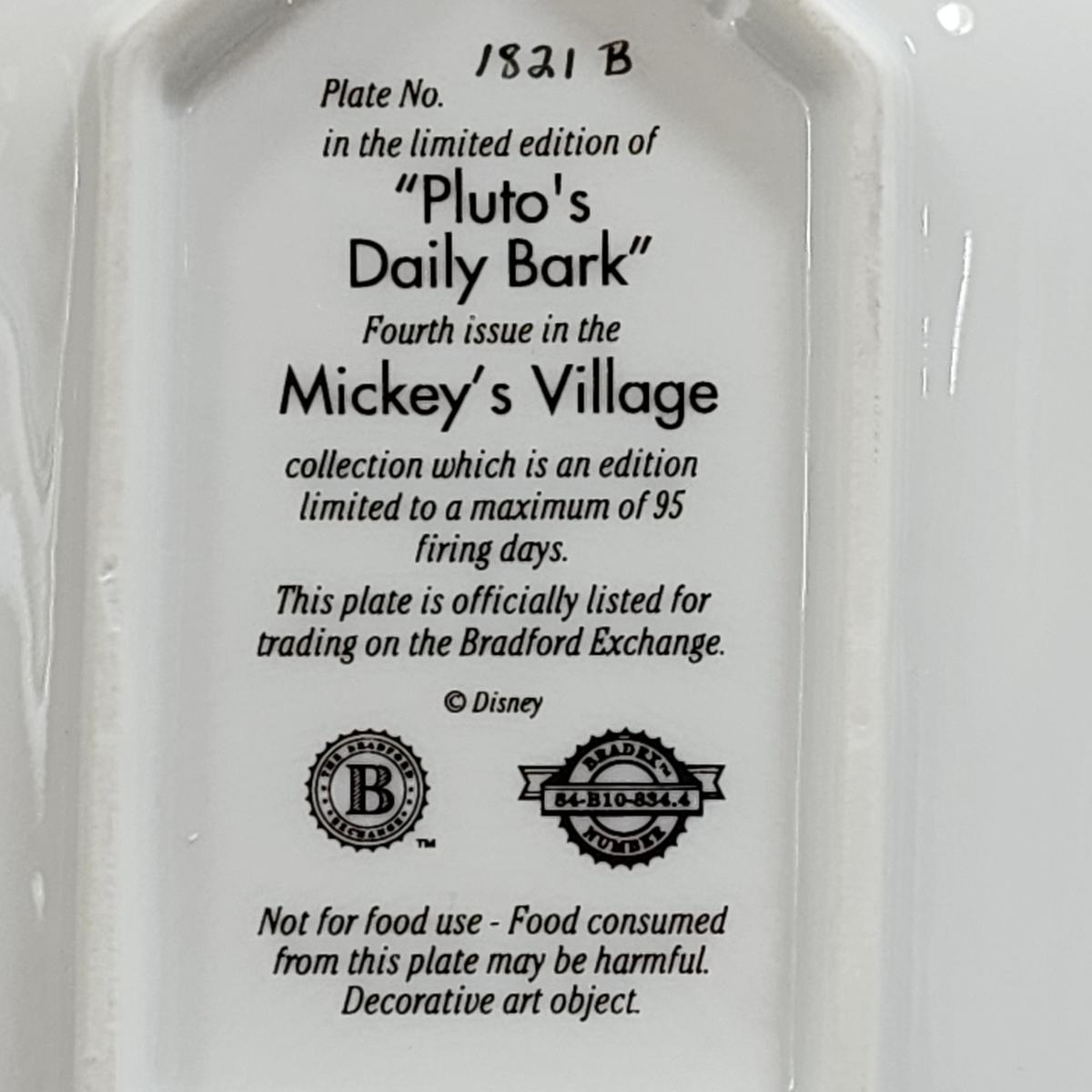 - Plutos Daily Bark Plate 1821B Mickeys Village 4th Issue Disney Bradford Exchange